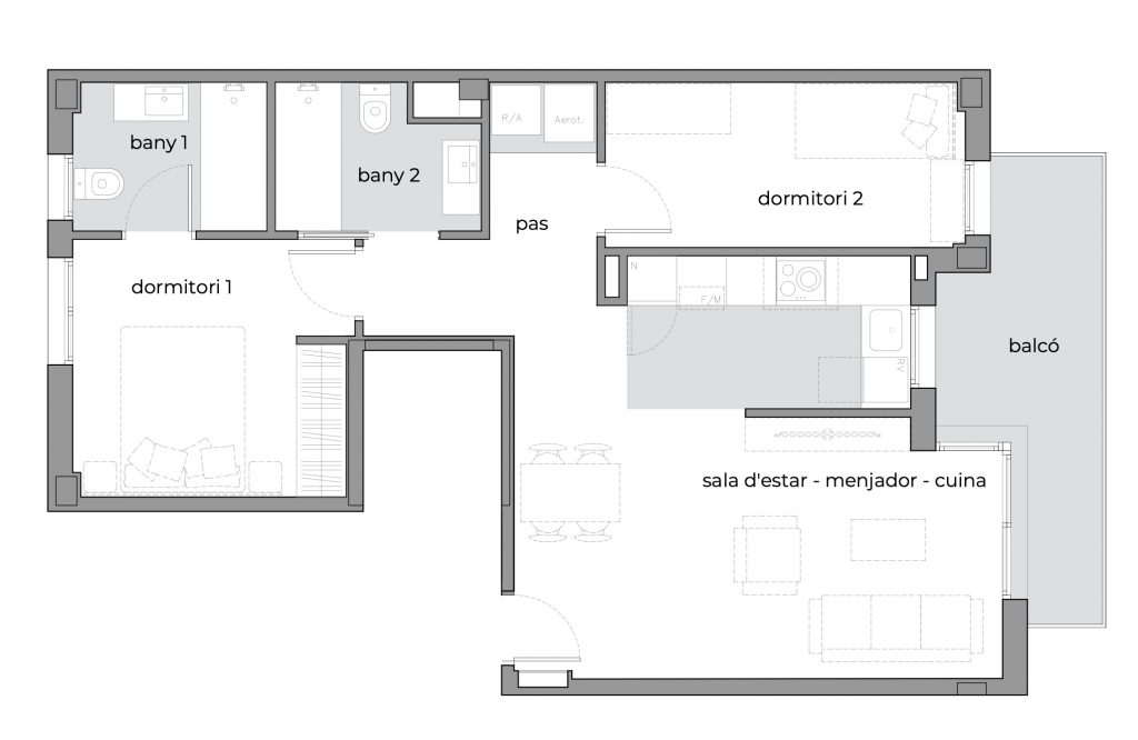 Esta promoción está concebida con un alto estándar de sostenibilidad y eficiencia energética. Convencidos de que los pisos tienen que ser eficientes, aumentar el bienestar de las personas y reducir la emisión de gases de CO2.